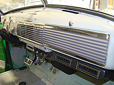 The custom molded plenum fits along bottom edge of the dash for switching and louvers. The plenum can be painted or covered with upholstry to match the interior of the truck.
