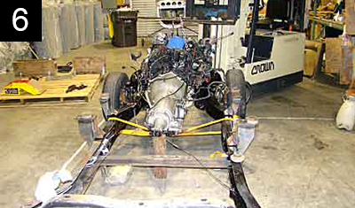 The AD-Engineering conversion kit includes laser- manufactured body mounts that fit exactly on the S-10 chassis. The kit comes with completely illustrated instructions to locate the new body mounts, and all of the hardware needed to do the installation. It took about three hours to lay out the brackets, drill holes and bolt them into position. After we were sure of the body mount alignment, we zip welded the new body mounts into position (5). The Caprice Engine was then lifted into place in the S-10 chassis (6). Below, you can see the Caprice engine in place, ready for the next step (7). The folks at AD-Engineering in Sonora, CA came to our shop to oversee the conversion process. This was the first panel truck conversion kit and he wanted to verify body mount alignments. In this photo you can see the running board mounting brackets in place (8).